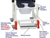 MJM International 118-3TL-SSDE-CBP-AB-DDA-SF-10-QT-C-BB-AT Shower Chair With Total Lock Casters, Soft Seat Deluxe Elongated, Cushion Back, Dual Swing Away Armrests, Sliding Footrest, Square Pail, Safety Belt and Anti-Tippers